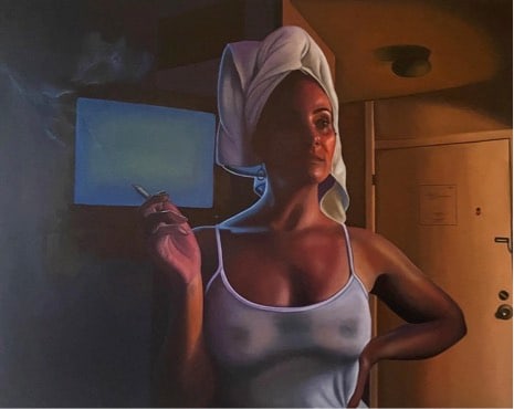 Thérèse Mulgrew (b. 1991) grew up just outside of Dubuque, Iowa. Influenced by her mother's surreal oil paintings and her grandmother's impressionist still lifes, she began to cultivate her own style which focuses mainly on depicting large-scale portraits and nostalgic still life in oil paint. Her paintings represent an attempt to explore vulnerability and intimacy.