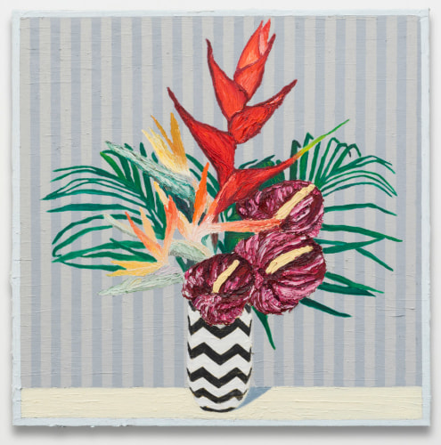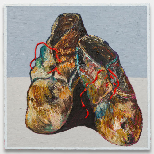Egan’s work is characterized by his indulgent use of oil paint applied with a palette knife in robust, rich strokes. The efficacy of his technique portrays psychological intrigue, questioning whether the objects have a latent meaning aside from the generalized familiarity to the viewer. Although some of the subjects in Close to Home are actual, observed objects, Egan often seeks out poor quality images from which to work so that he has the license he needs to add ambiguity, expression, and rhythm when making his own paintings in his signature, heavy impasto.