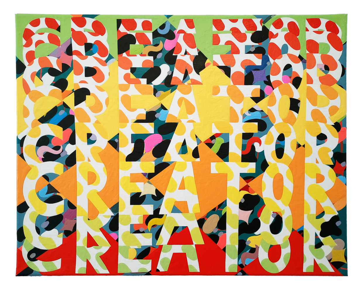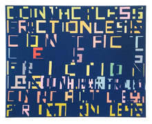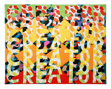 Becky Brown explores technology’s vast impacts by adapting text from social media, news, advertising and other online sources. As an endless scroll of language numbs our minds and senses, she uses repetition to test boundaries between meaning and nonsense. Hand-painted lettering allows poetic nuance a way back in, resisting the standardization of Word documents and text messages, and drawing attention to the loss of individuality in on-screen expression.