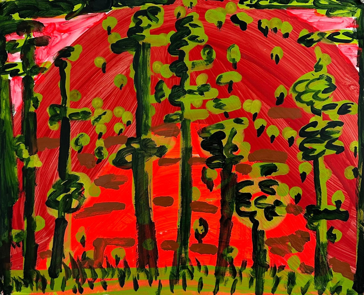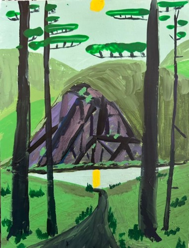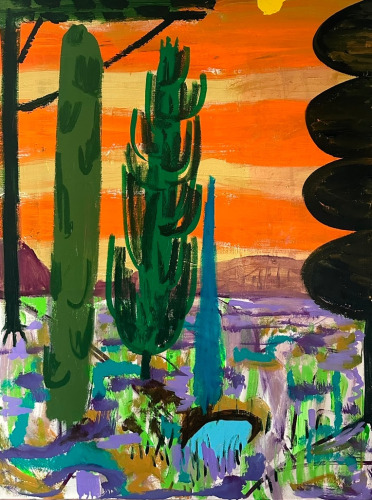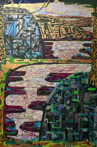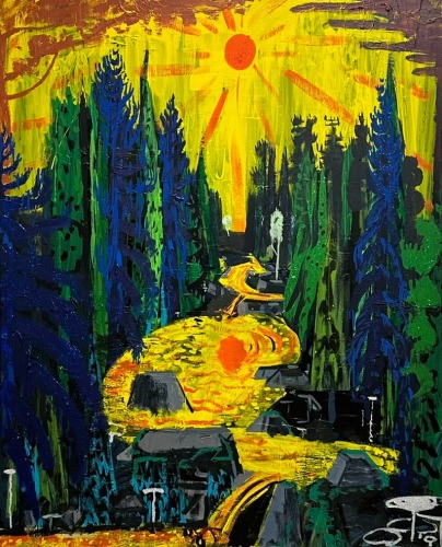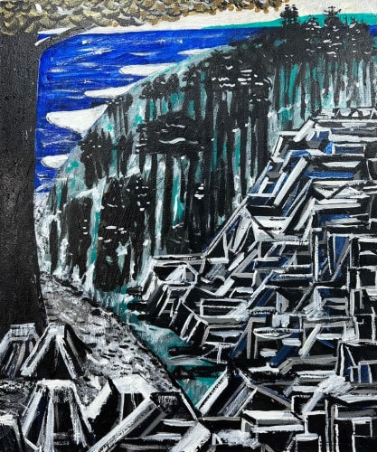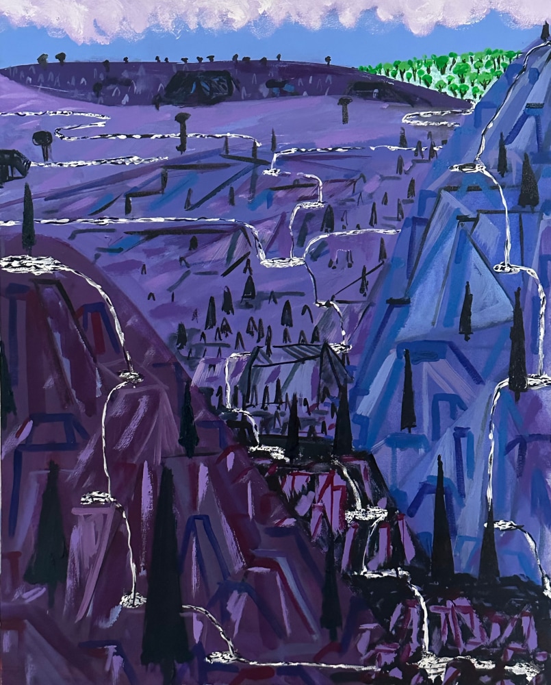 Controlled Burn also reveals King's unique approach to the canvas as a site of continual revision. He often paints over older works, allowing previous images to subtly inform and resonate within the new. This act of erasure and creation, of destruction and renewal, is reflected in the regenerative nature of controlled burns—intentional fires that clear away the old to make way for the new. King’s paintings invite contemplation of the elemental forces that shape and reshape our world.