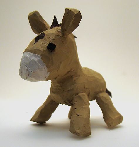 The reasoning behind the use of toys is that they are immediately understood. I needed imagery that conjured up ideas of innocence or a simpler time without having to make the audience work too hard. The combination of a colorful, simple child's toy carved in a primitive way forces the viewer to confront something sentimental and non-existent in their day-to-day routine and reinvestigate it through the lenses of maturity. In a world where there is nuclear warfare and also sandwiches, perspective is necessary.