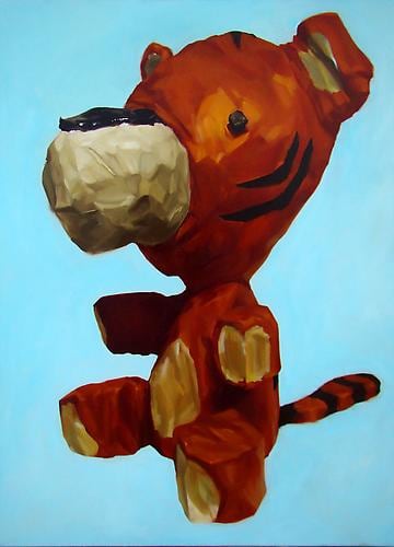 George, can you talk a bit about the choice of a blinking toy as the central narrative image in your projected video? And Andy, why the choice of stuffed animals - what is both compelling and significant about them as an object to sculpt and then paint?