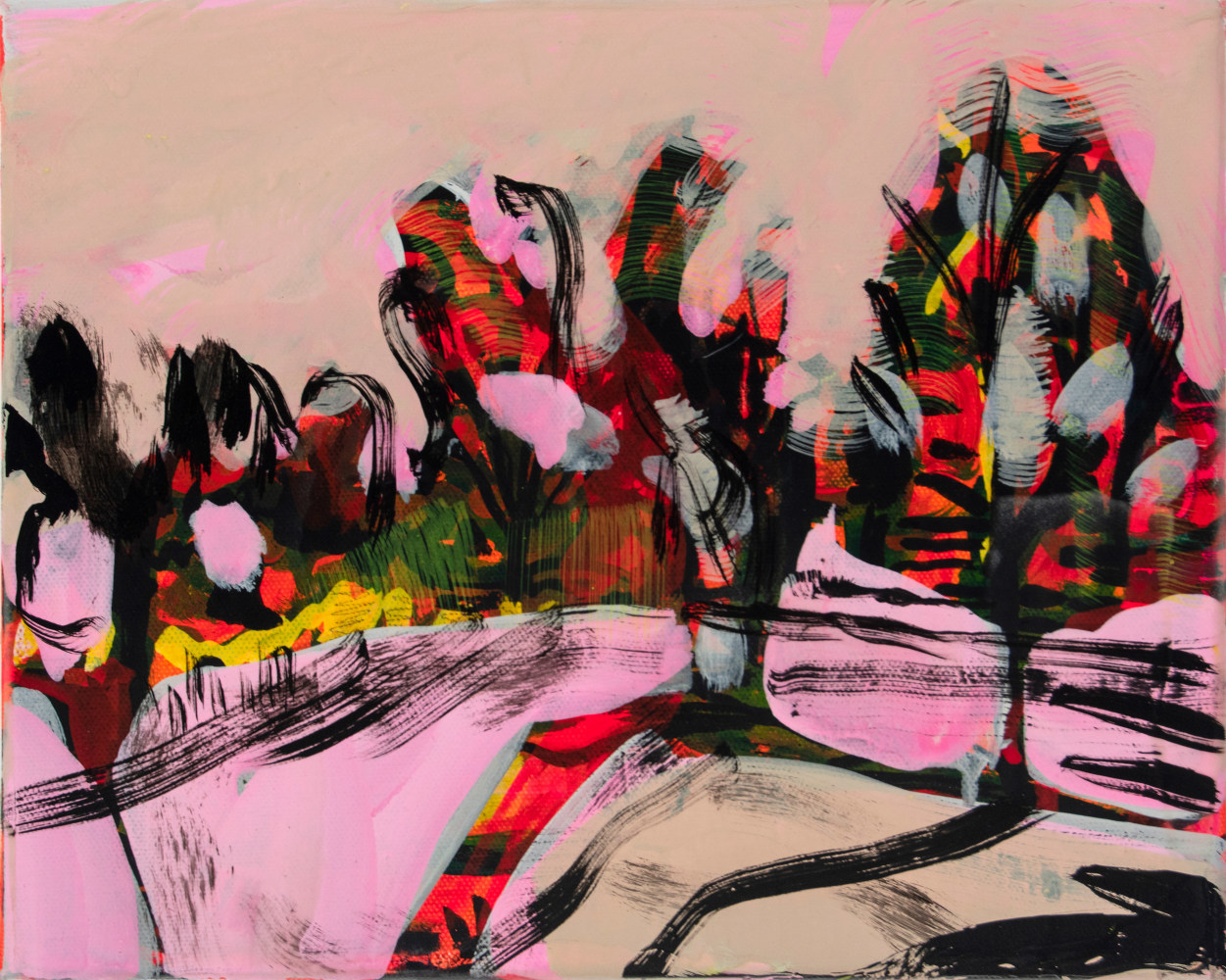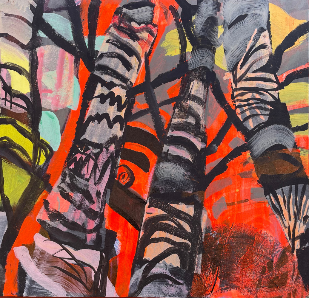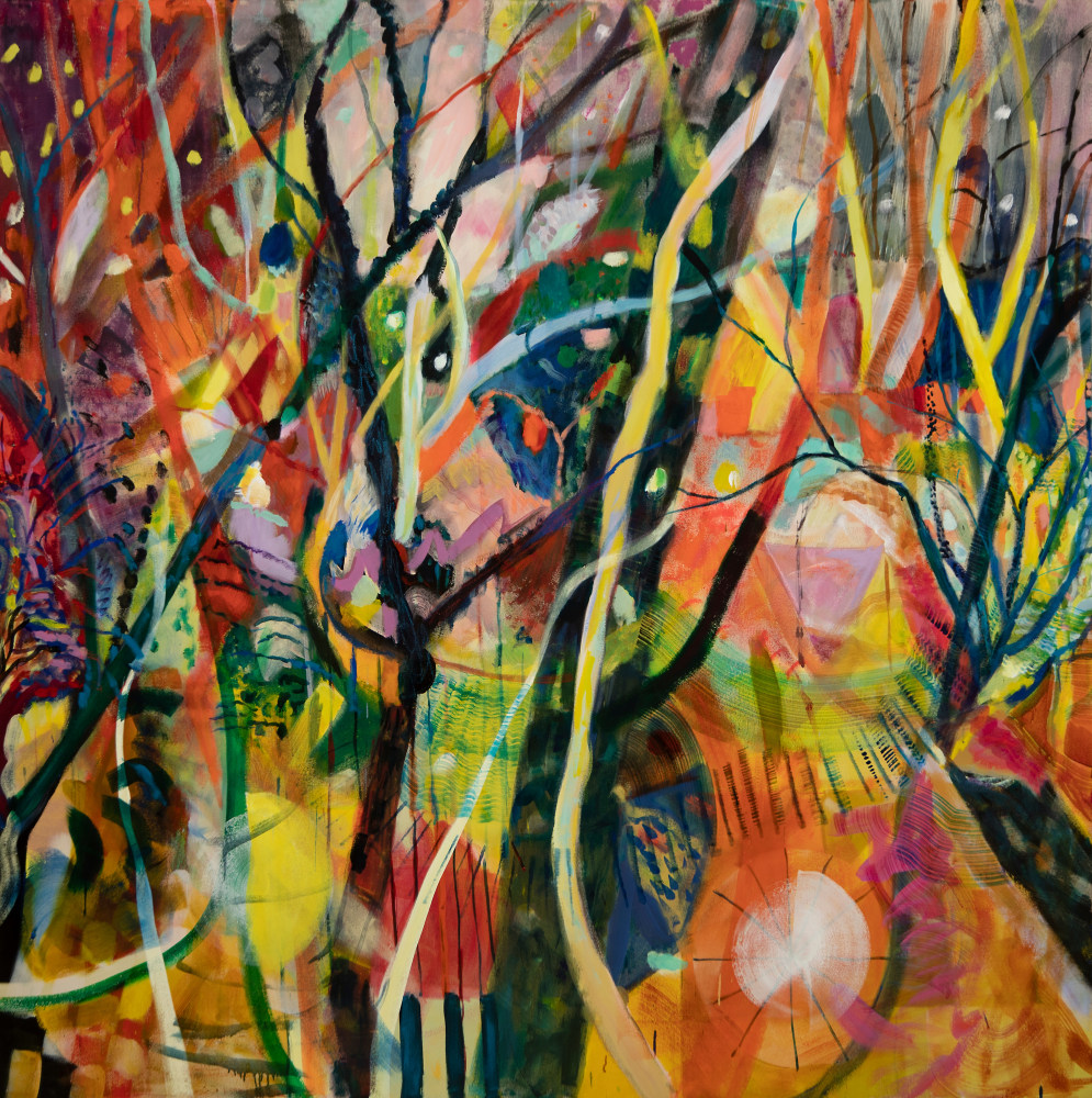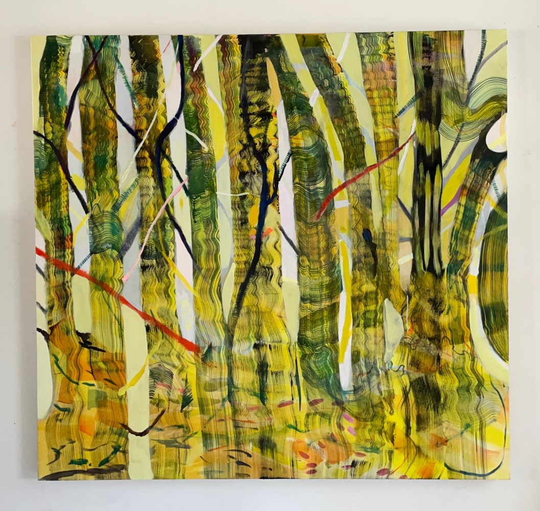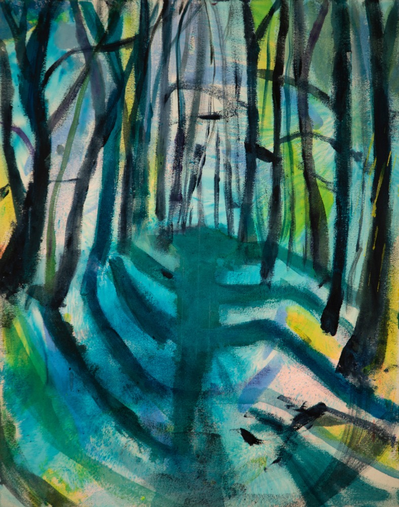 Lambert’s work celebrates the experience of moving through landscapes. Her depictions of forested space tessellate a living network that seems continuous with the subject-matter from which her source material derives. Out of this comes less a naturalistic description of nature than a living idea that cuts to the quick of the holistic vision she preserves in washes of acrylic. Across the seasonal cycles which reveal nature’s continual presence, Lambert breathes new life into perceptions that might otherwise be glossed over, documenting the freshness of traversing undiscovered paths.