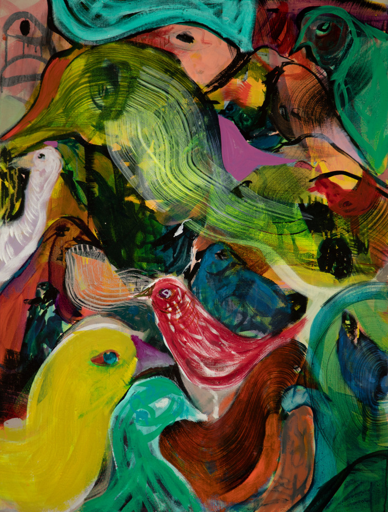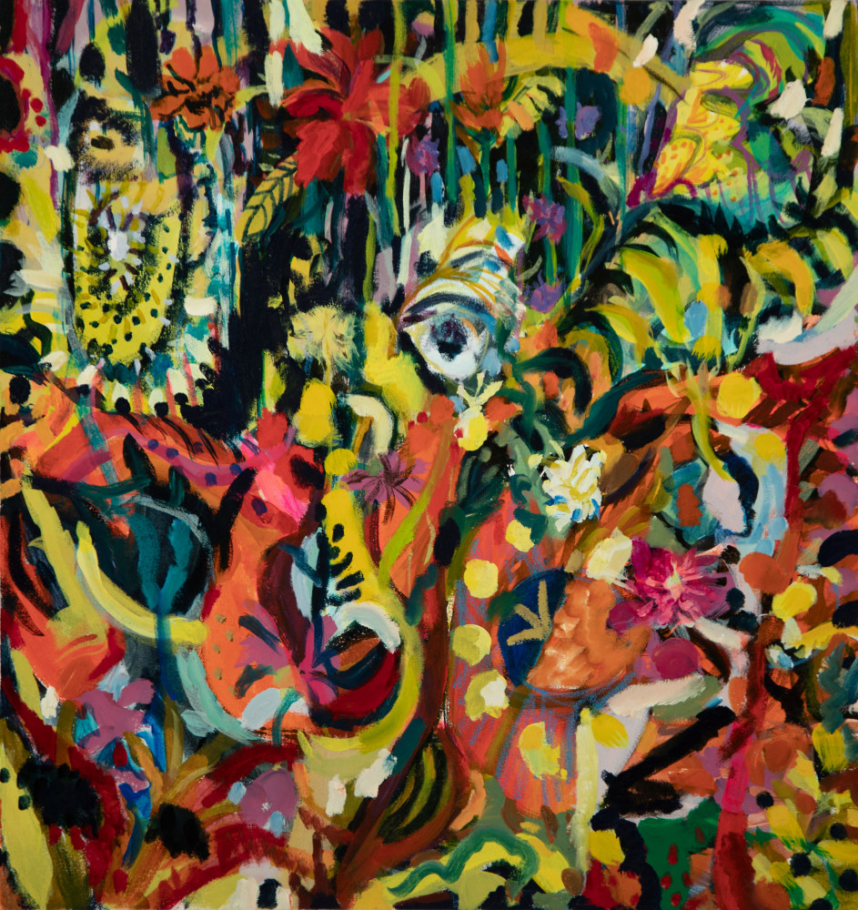 The forested buzzing of life that surrounds her studio in Southern New Hampshire constitute the organic inspirations which find their place in the chatoyant canvases of Emily Noelle Lambert. Fascinated by that qualitas occulta which makes nature not only something observed, but which observes the observer as she walks through wooded paths and draws the studies that constitute the raw material for her paintings, Lambert recreates the experience of a sentient environment replete with movement, change, and subtle shifts in energy.
