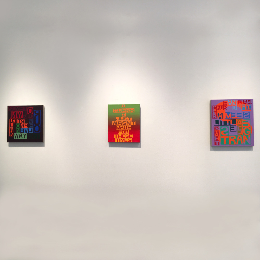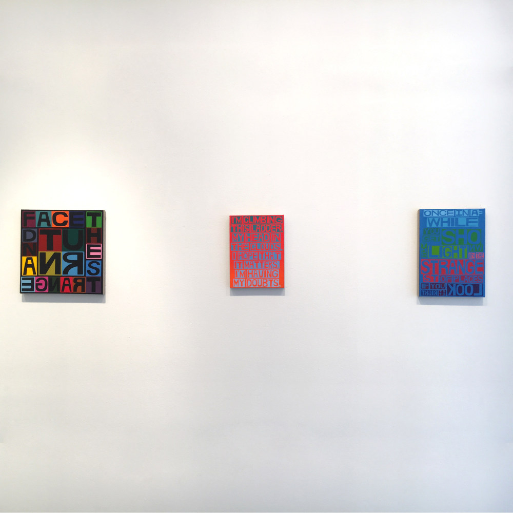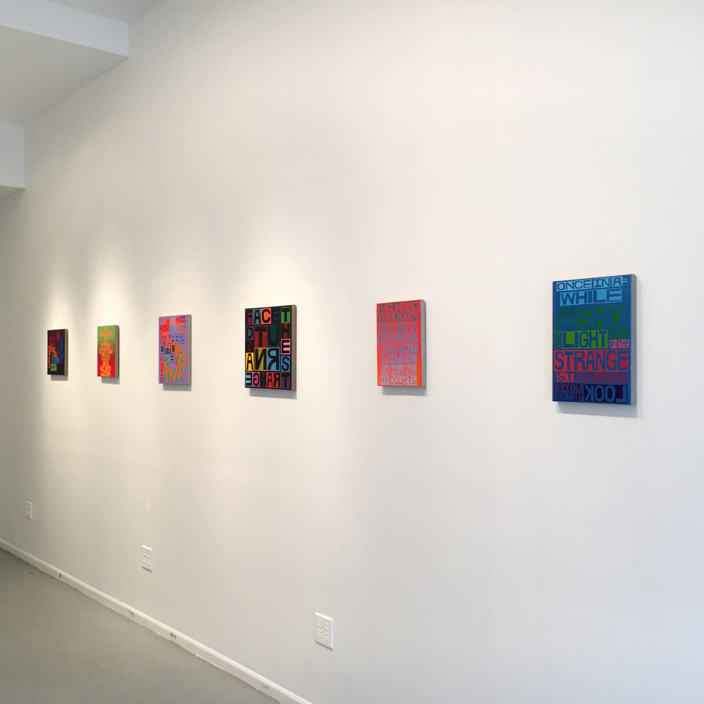 Freight + Volume is pleased to announce There’s a Riot Goin’ On, our fourth solo exhibition by painter Erik den Breejen. A master of several disciplines, including singer/songwriter of his former band Big Game, Den Breejen is above all a painter. His paintings play with a mosaic of text, color, and pattern, and the embodiment of music, film, comedy and literature. He uses lyrics, quotes, jokes, and poems of iconic figures from the early 1970s to express the collective - and sometimes tragic – unconscious of the time. The title of the exhibition, There’s a Riot Goin’ On, comes from the 1971 Sly & The Family Stone album of the same, which itself was named in response to Marvin Gaye’s What’s Going On album (also 1971). In a one-two punch, the paintings use text to create both mosaic-like portraits as well as project the voice of these cultural icons.