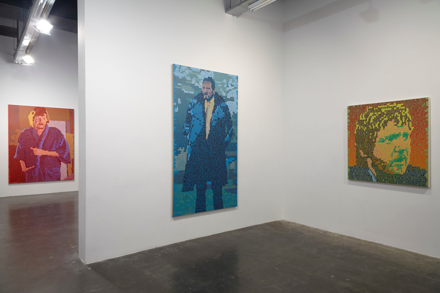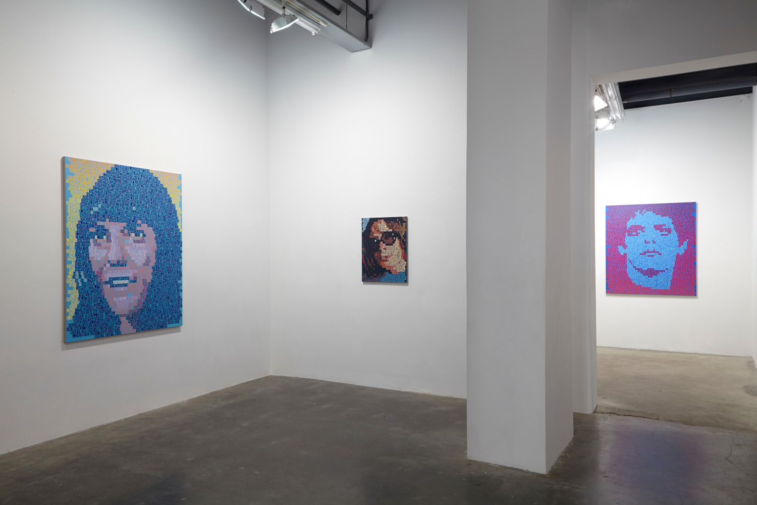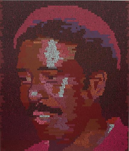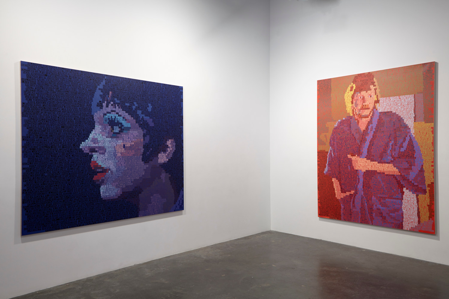 Freight + Volume is pleased to announce There’s a Riot Goin’ On, our fourth solo exhibition by painter Erik den Breejen. A master of several disciplines, including singer/songwriter of his former band Big Game, Den Breejen is above all a painter. His paintings play with a mosaic of text, color, and pattern, and the embodiment of music, film, comedy and literature. He uses lyrics, quotes, jokes, and poems of iconic figures from the early 1970s to express the collective - and sometimes tragic – unconscious of the time. The title of the exhibition, There’s a Riot Goin’ On, comes from the 1971 Sly & The Family Stone album of the same, which itself was named in response to Marvin Gaye’s What’s Going On album (also 1971). In a one-two punch, the paintings use text to create both mosaic-like portraits as well as project the voice of these cultural icons.