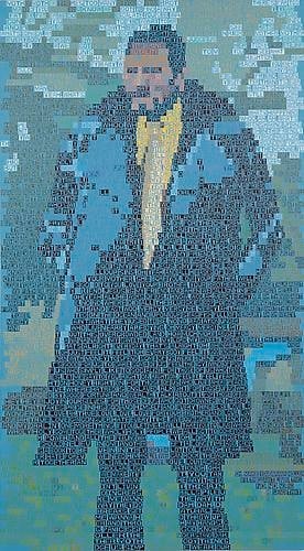 In the same way that the Richard Pryor quote is about race and overpopulation, Den Breejen’s painting of Allen Ginsberg (“Friday the Thirteenth”) is about the environment, war, and power, and equates earth pollution with mind pollution.