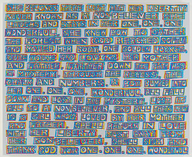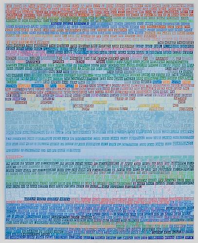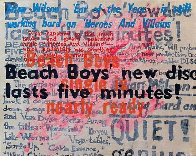 Much like the subject of his upcoming solo @ Freight+Volume, SMILE, Erik den Breejen’s new series of paintings is a long-awaited masterpiece. Following in the distinguished and venerable tradition of illustrated words, from the Gutenberg Bible through medieval illuminated manuscripts, up to Holzer, Weiner and Kruger’s conceptual billboards, den Breejen’s fascination with text has met a worthy challenge—illustrating the entire lyrics to the recently re-released Beach Boy’s magnum opus, SMILE.