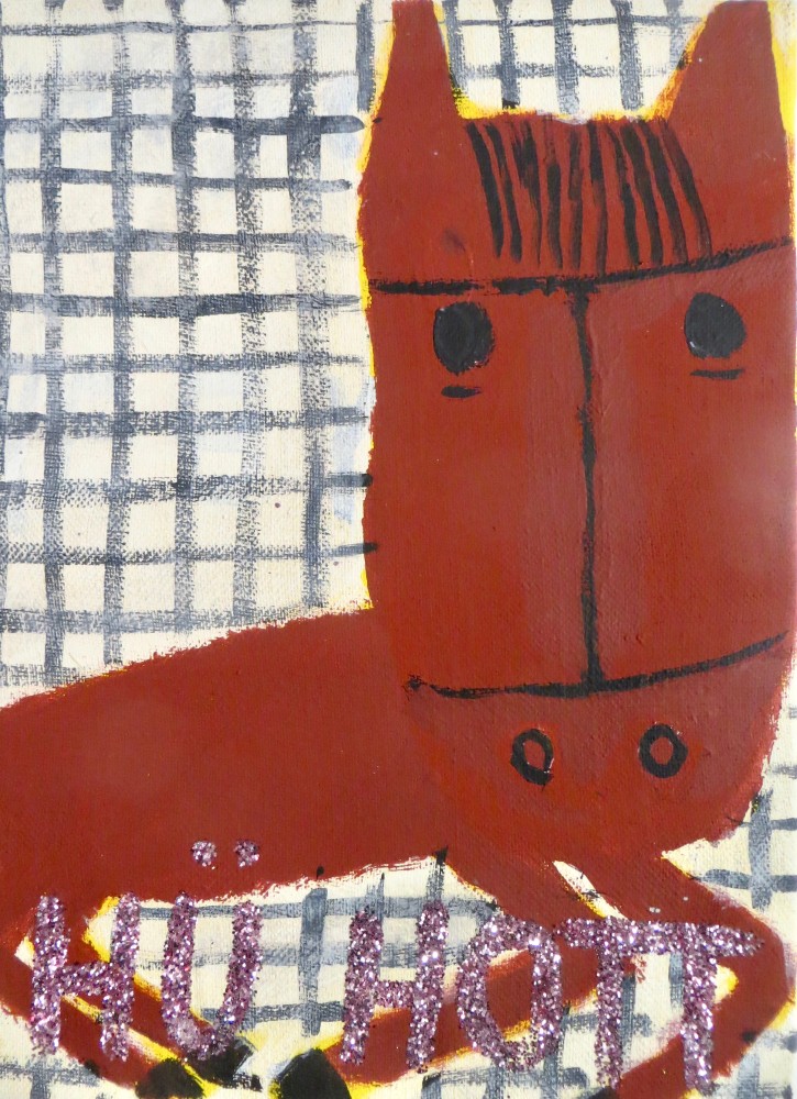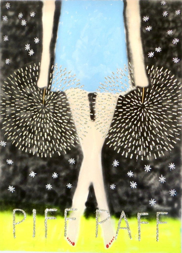 otherwise unconventional materials (such as glitter), her wilding use of paint and pigment is