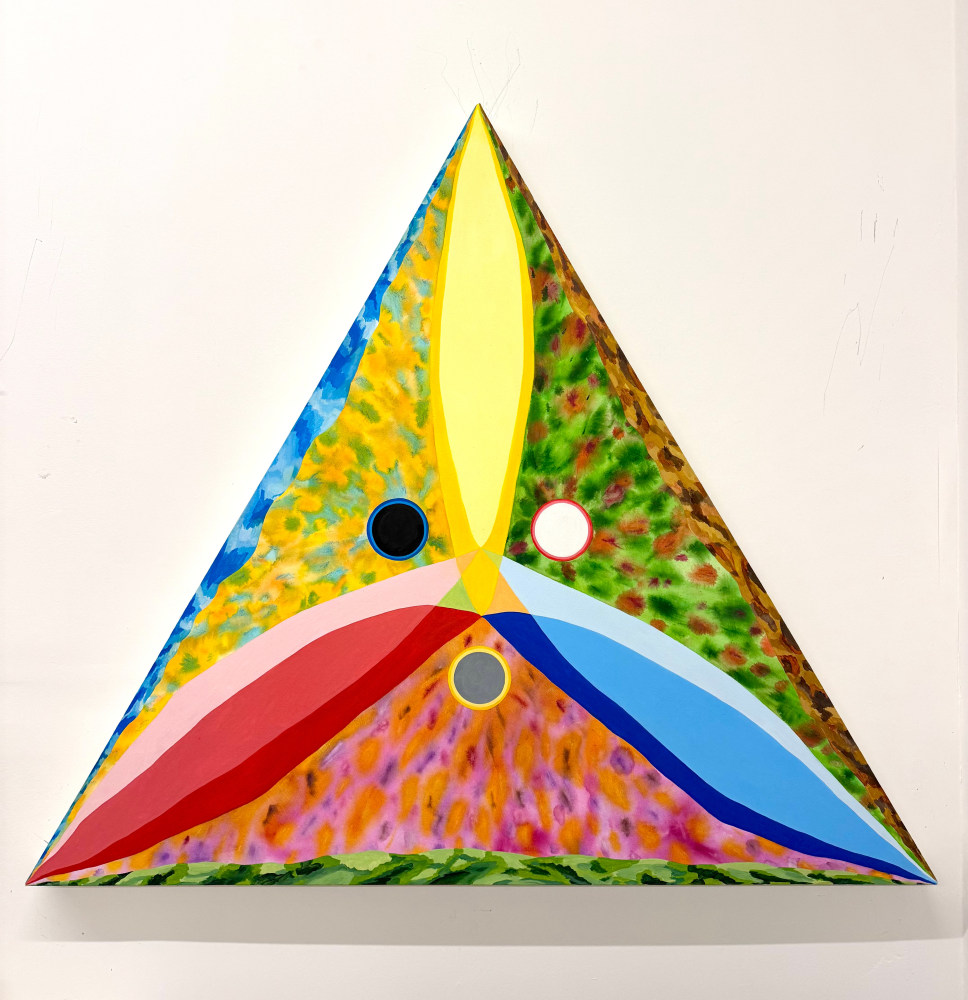 Between Jai Hart and Kelly Worman there lies a placid, almost whimsical seriousness that opens up the formal registers of painting, while also making it accessible in unique ways. What the viewer may notice first is both artist's shared sensitivity to color. Worman, informed by color theory, uses the canvas as a living archive to capture the interplay of measured fields of color. At once gestural and geometric, her works often take their point of departure from sacred sciences