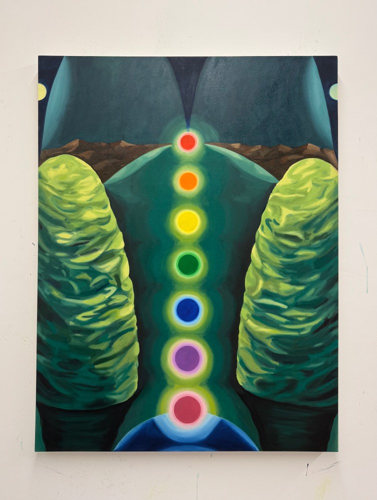 For a work like “Mars in Leo” (2024), Worman actually assembled the details of the painting from Nov. 3rd through Dec 6th, 2024. In this almost symbolist fashion, cultural particulars are alchemized into poignant contrasts of color. The results of the presidential election are