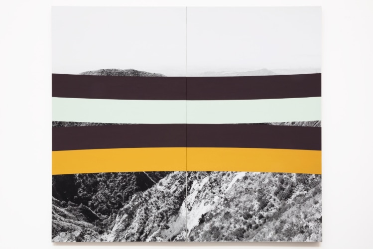 Freight+Volume is pleased to announce West, an exhibition of new work by James Hyde, the artist’s first solo show in New York City since 2010. Fusing landscape photography with painted shapes and abstract forms, the artist explores themes of visual perception and reproduction, all the while challenging the boundaries of painting as a medium.