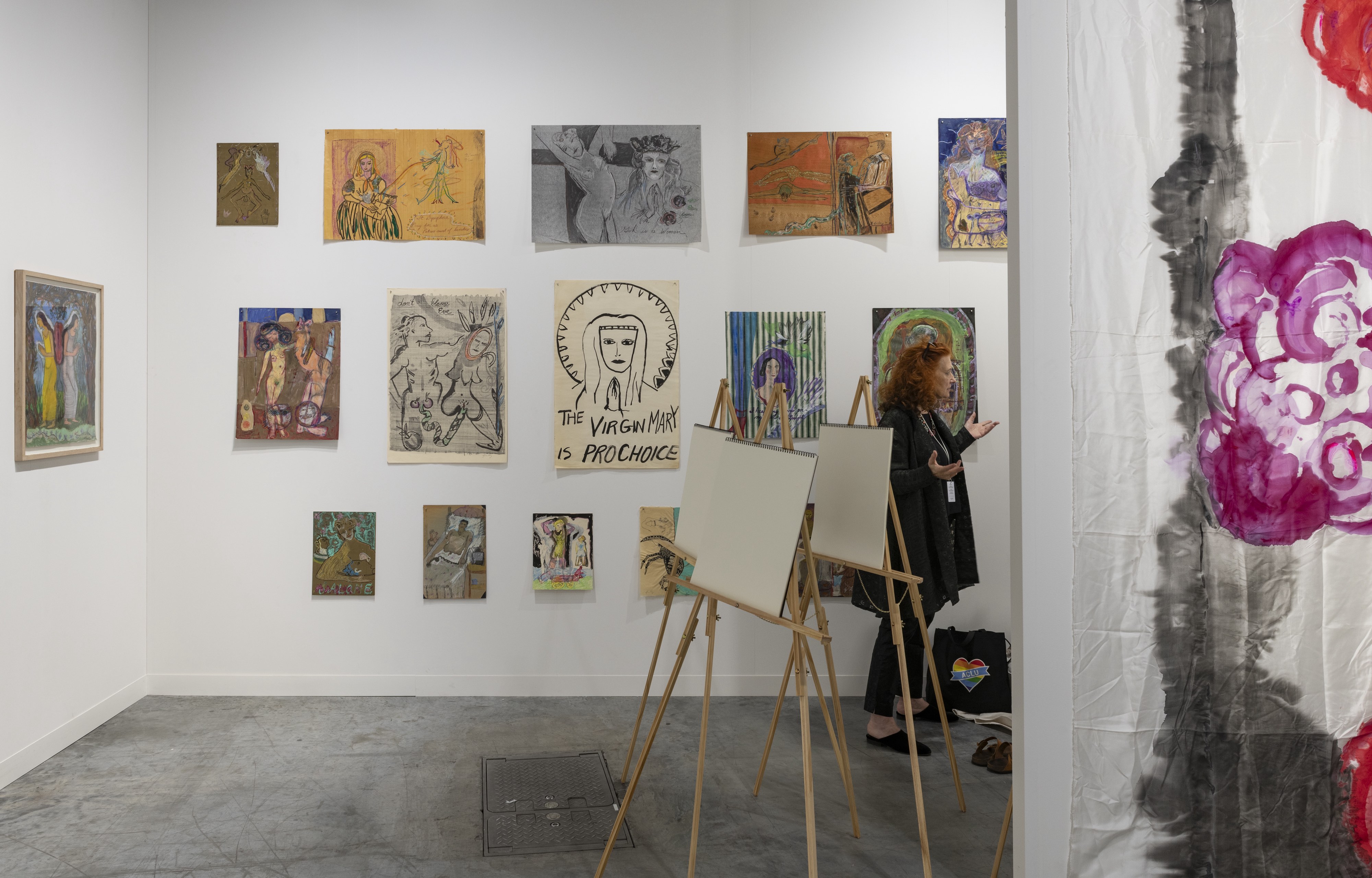 The centerpiece of our booth consists of a restaging of Finley’s seminal interactive installation, Go Figure (1997-1998), which includes a traditional figure drawing class, recontextualized in the space of a public-facing art venue. The live figure drawing class, which will be performed each day of the fair, features a nude model on a plinth, Finley in the role of instructor, and drawing stations where visitors will be invited to draw from life. Our restaging of Go Figure commemorates the twenty-fifth anniversary of the first public presentation of this previously censored work.