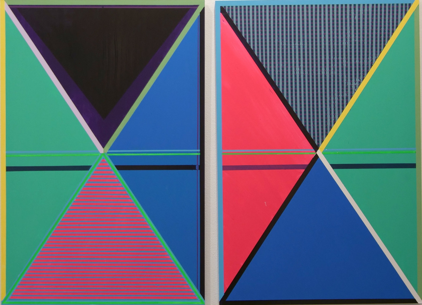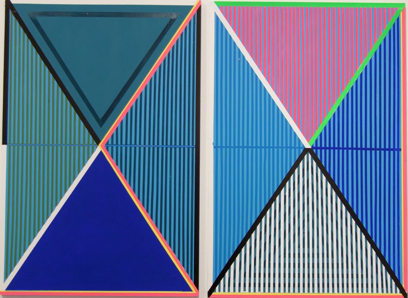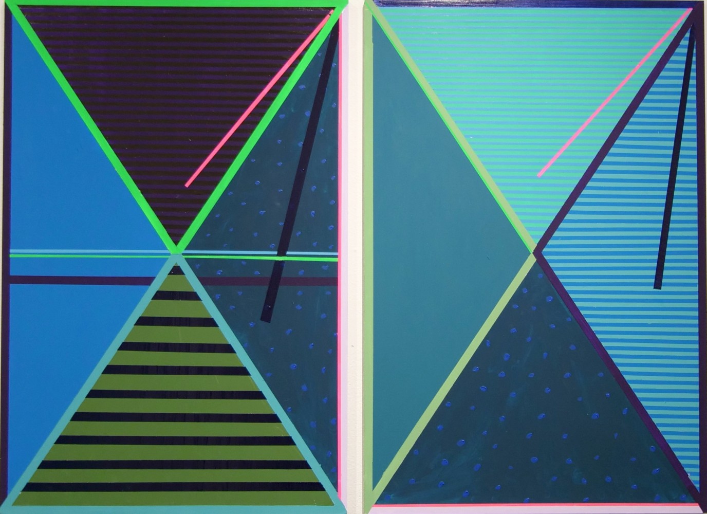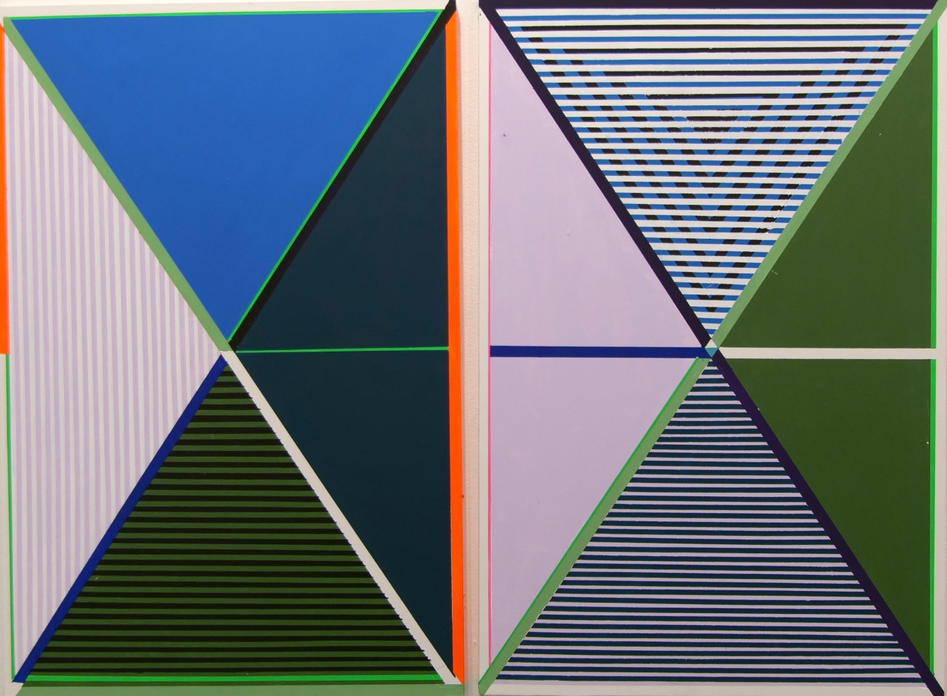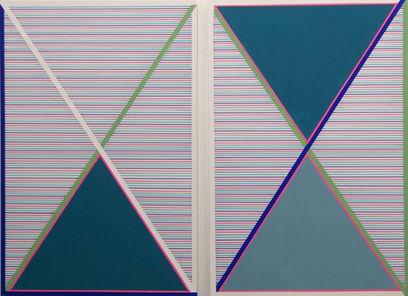 Freight + Volume is pleased to present “Slow Hum,” New Works by Kelley Johnson. “Slow Hum” reveals new artworks by Miami-based artist Kelley Johnson. Johnson, an interdisciplinary artist whose work spans painting and sculpture, embraces a style simultaneously precise and deceptively minimal. The exhibition features new works from the artist’s Kite paintings series, which combines aspects of Op Art and Color Field Theory, intermingled with concepts from Rosalind Krauss’ theory of Sculpture in the Expanded Field.