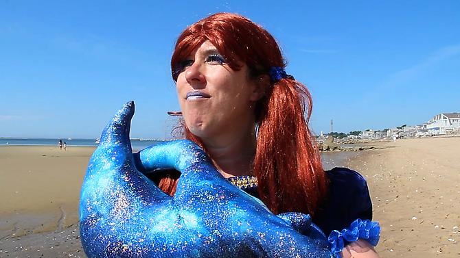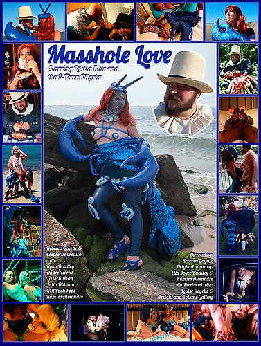 In Masshole Love, Goyette cracks open her character. Lobsta Blue, a Provincetown (P-Town) performance artist troubled by past sexual abuse, dedicates her life to sexual performance art and orgiastic behavior within the mask and shell of her couture blue lobster trousseau. She has created her own "act," called the "Lobstasexcitation Show" a mix between burlesque and New Age sexual guided visualization in which she seduces audiences to uncover their true sexual selves within the depths of the ocean.