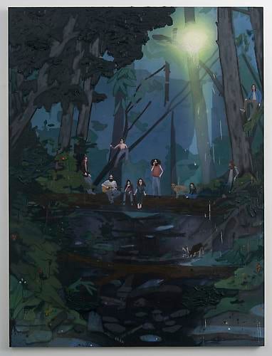 In Shadowland, Kent Dorn further explores a distinctly haunting wooded world and its unsettled inhabitants. With a nod to horror movies, hippie counterculture, and the rural Southern landscape of his youth, Dorn's distinct landscape paintings are not as concerned with an idyllic representation of nature as much as constructing a virtual stage for an unfolding melodrama. Littered with debris, overgrowth and remnants of past inhabitants, his landscapes are a conflation of the real and imaginary, where myths come to life.