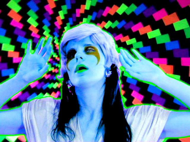In keeping with the concept of "Turn On, Tune In, Drop Out," the video presented this month showcases Erica Magrey, a young New York-based artist and musician whose work combines send-ups of lo-fi TV kids' and sci-fi shows like Star Trek with costumes appropriate to Burning Man Festivals and 70's alt-rock shows. In Troubadour, Magrey explores the ways in which fantasy shapes reality and identity; a kind of Carlos Casteneda pilgrimage in neon fluorescent color. Magrey writes, "Troubadour is a psychedelic journey of self-discovery through a virtual space of the imagination, a landscape of the mind—and of the unknown. [The] heroine, Metalmags, is a wandering minstrel, a lost soul, a glam rocker, a psychonaut, a superhero, a mime, a depressed 20-something—any and all apply. At first, she is without hope—stranded in an alien world, haunted by memories of another time and place. But with the aid of a self-help tape, her perspective and the course of her path are transformed. Troubadour's hand-crafted lo-fi sounds and visuals offer an intimate view of the emotional realms of consciousness and creativity. A meditation on soul-searching in an age of anxiety, Troubadour is on your side."