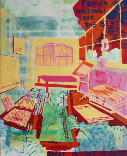 The works of Mary DeVincentis illustrate the freewheeling development of consciousness, something climate-savvy and adventurous. Similarly, the spatial integrity, the toying with gaps and recesses which runs through Natalie Westbrook’s work leans into a utopian vision where consciousness is equally composed of holes, yet ebulliently overflows. The works of Madalena Pequito and Ezra Johnson revel in the measured excess of those privileged moments when we feel absolutely free. For his part, Will Watson's paintings depict epic summer vibes in urban settings where people can still experience conviviality and delight in each other's company. His paintings find their counterpoint in the work of Karen Finley, who reminds us that power cuts into even our most radical affirmations of creativity and freedom.