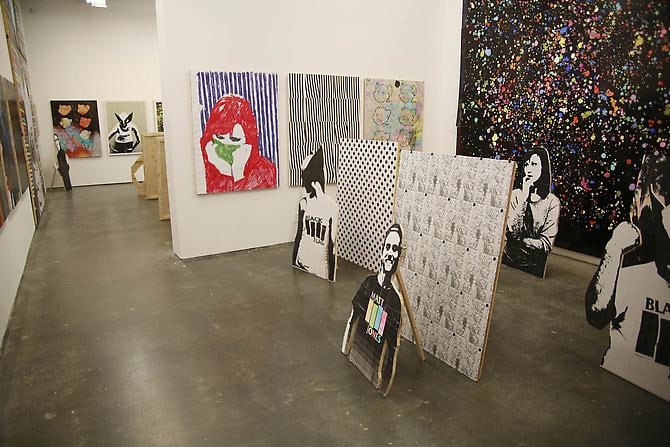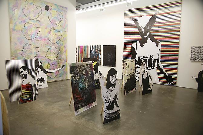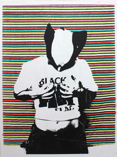 In Jones’ case, one of the particular emblems in question is the Black Flag T-shirt, a simple affair of four vertical black bars on a white background (designed by Raymond Pettibon in the late 70's), which resonated – and arguably helped spawn - an entire punk/hardcore consciousness. In his plywood cut-outs and large-scale works, Jones starts with a basic premise, a single image - and proceeds to paint, photograph, scan, Xerox, laminate with lo-fi Elmer’s glue, and draw over it again with alcohol-based markers until the end result is multiple generations away from its starting point. The technique itself becomes a gesture of boldness and refinement, designed to challenge the viewer’s understanding of memory and recognition in the digital/internet age. Peers of Jones, such as Wade Guyton, Kelly Walker and Josh Smith, also utilize similar techniques of image remove and repetition, but Jones takes the process one step further via his obsessive vision, his Buddhist-inspired focus, and the three-dimensional construct of his final product.
