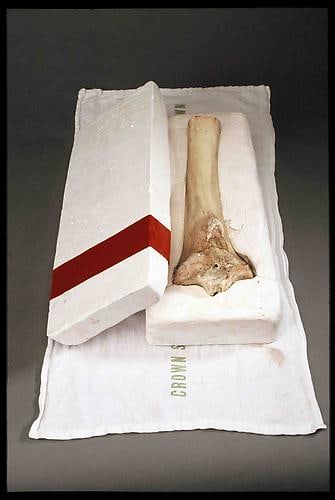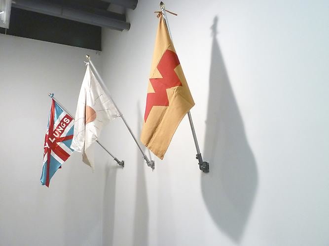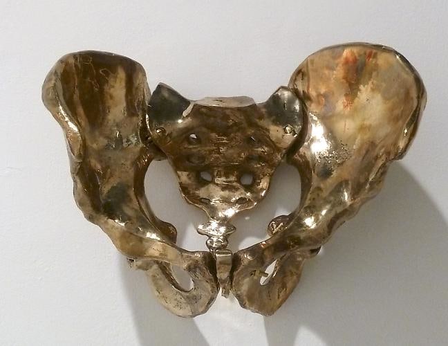 Eunah Kim (1973-2010) was also an artist from Korea who emigrated to NY for school and her art, and battled lung cancer bravely in the last few years of her life. Spirituality dominated her life and her art. Trained to become a Buddhist nun before coming to the United States in 2001, Kim earned a B.F.A in painting at RISD in 2004, and lived in Providence, San Francisco, New York, and Cambridge until returning to Korea in 2010. This posthumous show of select sculpture and wall hangings focuses on the insidious and poignant nature of her terminal illness. Happy Lung Flags (2009) is a series of three flags: one bears the image of a pair of human lungs, another is loosely based on the British flag and bears the words “Happy Lungs”, and the third bears the symbol of the comic book heroine Wonder Woman. The flags were made during Kim’s illness as a tribute to her besieged lungs, and represent the artist’s aspirations for health and happiness. The Casket (2004), made before Kim was diagnosed, is made of animal bone encased in white plaster. A prescient work, it explores the notion of preserving life after death. Lucy’s Pelvic Bone (2009), cast in highly polished bronze, is Kim’s last major work. It represents the concept of turning the dark reality of death into a lasting treasure, by celebrating what Kim considered a woman’s most sensual body part through the luxurious beauty of gold. For those who were fortunate enough to have known her, and experienced her brief but exemplary career, this show also serves as a memorial and homage to the artist. The migration suggested in Kim’s work is a journey into the afterlife; her work lives on in mysterious and ethereal ways. Her F+V project coincides with the solo exhibition “In Her Wake: Eunah Kim” at Gallery DA (149 West 24th St., 6th floor) from June 21st-July 29th.