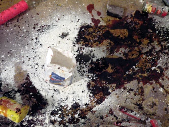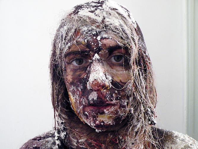 Lastly, Genevieve White, a Canadian performance artist currently living and working in NYC, presents “Acsstion” - a video depicting the artist slathering layers of baking ingredients on herself and then literally drawing on the wall by using her body as a brush. The piece plays off of fifties’ Betty Crocker stereotypes of a woman’s place in the kitchen; consumerism and waste in general; and a spoof of classic performance tropes such as Yves Klein’s body painting from the sixties. “Acsstion” also embodies the notion of a perfect migration – from idea to drawing to conceptual performance – as well as the transformation of an artist’s body into living sculpture and onto a higher plane. In addition, Ms White will be performing a new piece live at F+V entitled “Earth and Breathing: A Dance for the Bones”. In this sensory presentation comprised of dance and contortion, the gallery floor will be covered in branches and cinnamon spices. White will be wearing a costume in the shape of an hour glass, and will roll over the branches, cracking them under her body. Stretching the fabric and the body in this sensory presentation is a metaphor for adaptation and change. The music score, composed by John Melillo, centers around wind and breath tones. White has been featured at MoMA, Chashama, Whitney Museum, Neuberger Museum, New Museum, Deitch Projects, The Kitchen, and Performa. She received her MFA from Parsons in 2009.