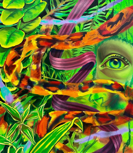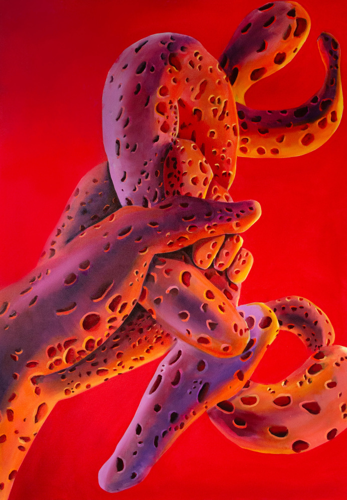 There’s a porousness to Natalie Westbrook’s work that speaks to how humans experience and interact with the natural world through the senses. If flesh is the reason oil painting was invented then acrylic and spray paint exists to describe the different interfaces we have with a thoroughly mediated and industrialized world.