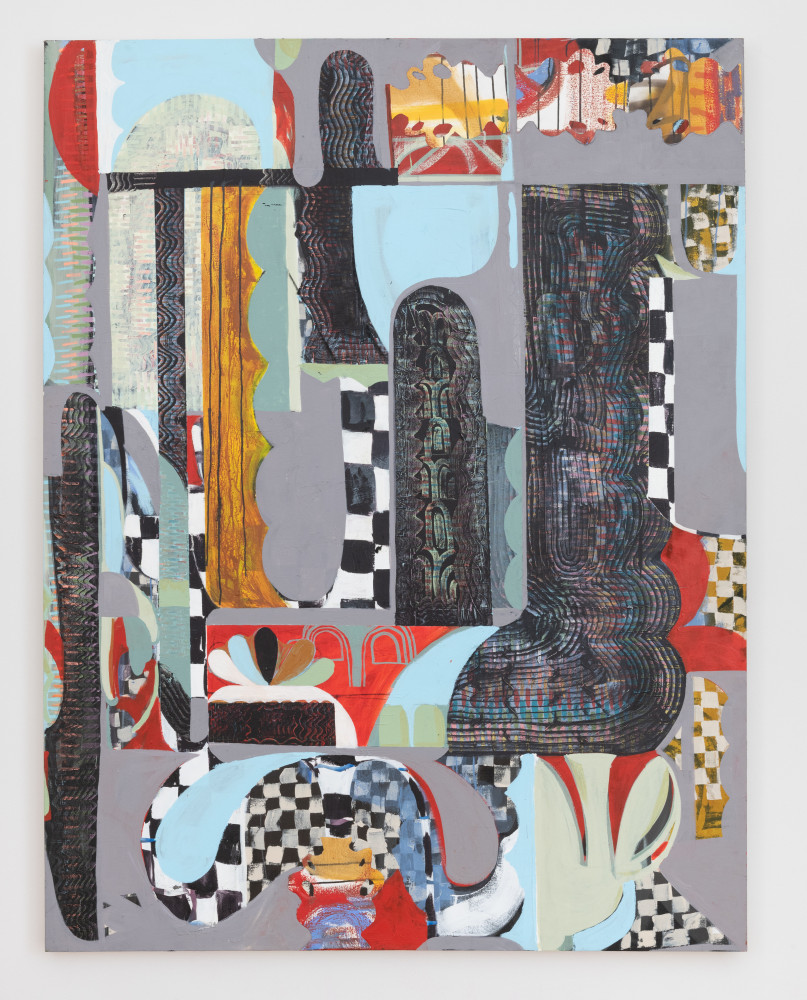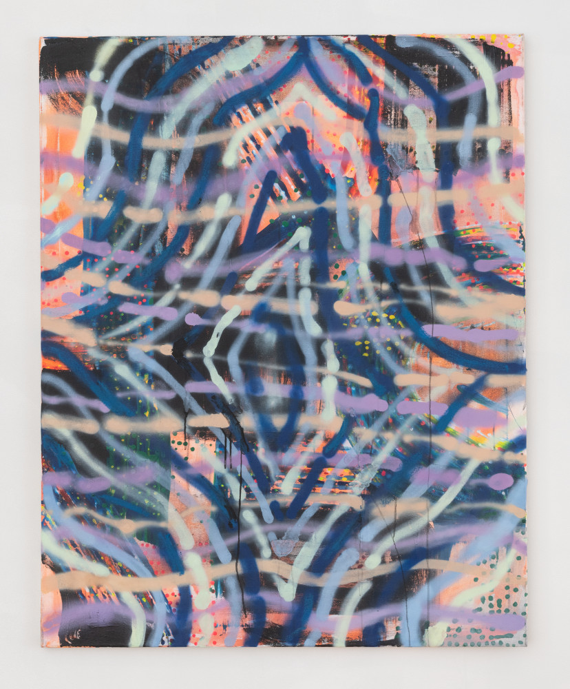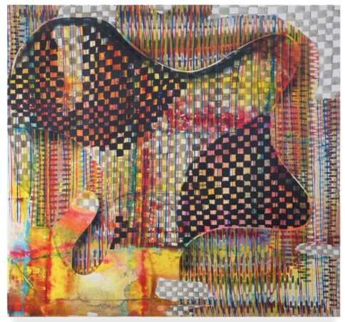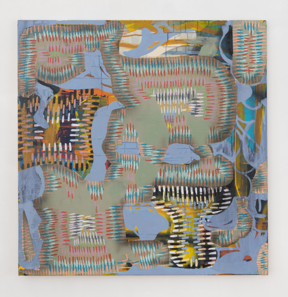 Paige Beeber’s recent paintings extend her commitment to mark-making as a metaphor for psychological and social transformations. With a grammar of marks that reference weaving and needlepoint, Beeber shows how small, diligent acts of making and repairing—which are often gendered feminine—can be even more heroic and romantic than gratuitous acts of violence. Beeber points to sci-fi writer Ursula K. Le Guin’s 1986 essay “The Carrier-Bag Theory of Fiction,” in which Le Guin asks her readers to reimagine stories of female-oriented “gathering” with as much life-or-death drama as male-oriented “hunting.” Instead of writing “with my spear, I slay this bear,” she wonders, why not tell “a gripping tale of how we wrested the wild oats from their husks”? Beeber takes up this challenge in her paintings, producing bold compositions filled with high drama and risk but with none of the clichés of Action Painting.