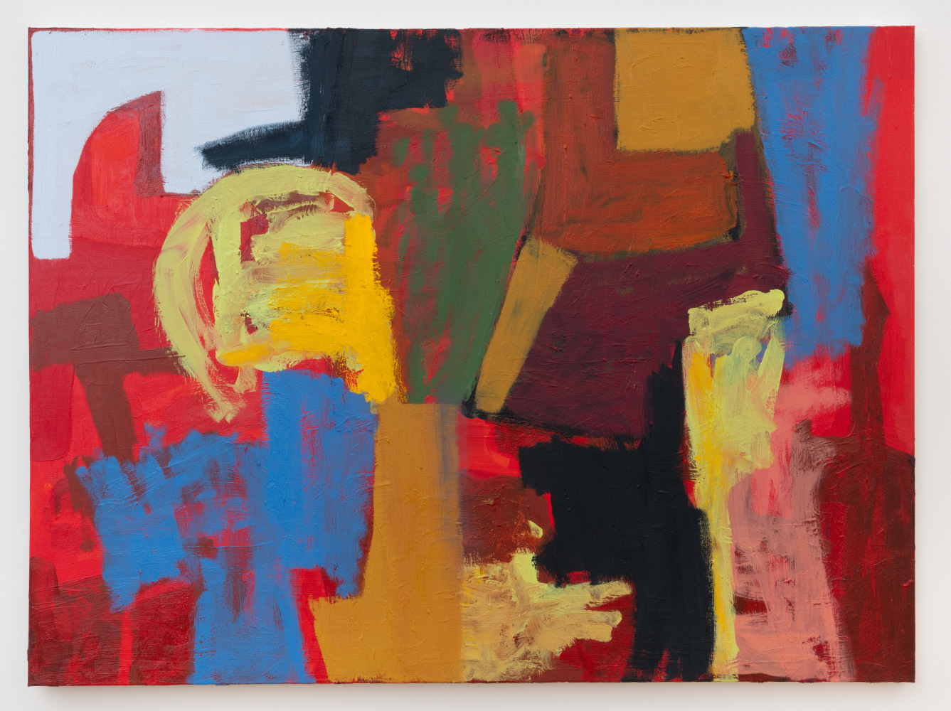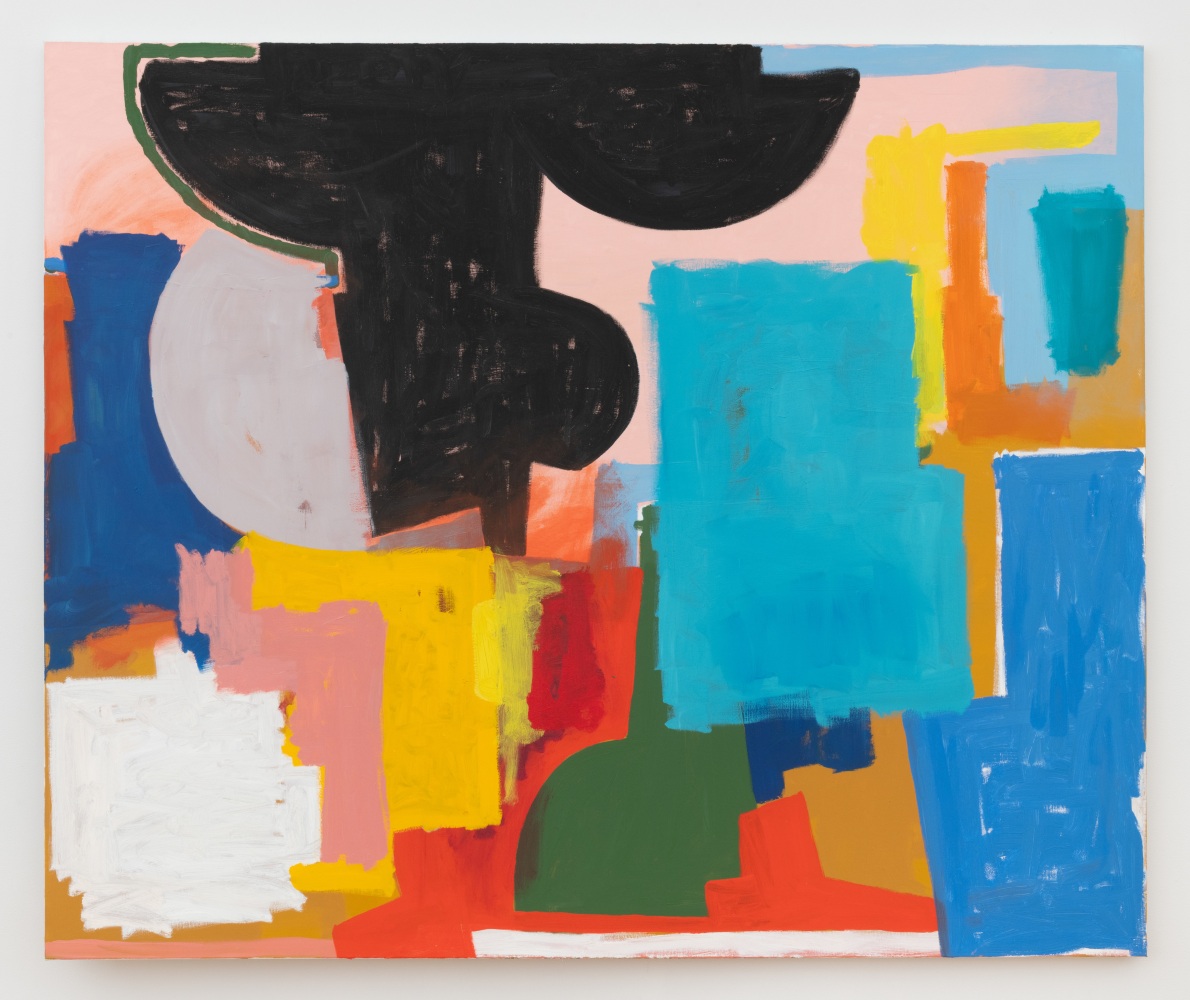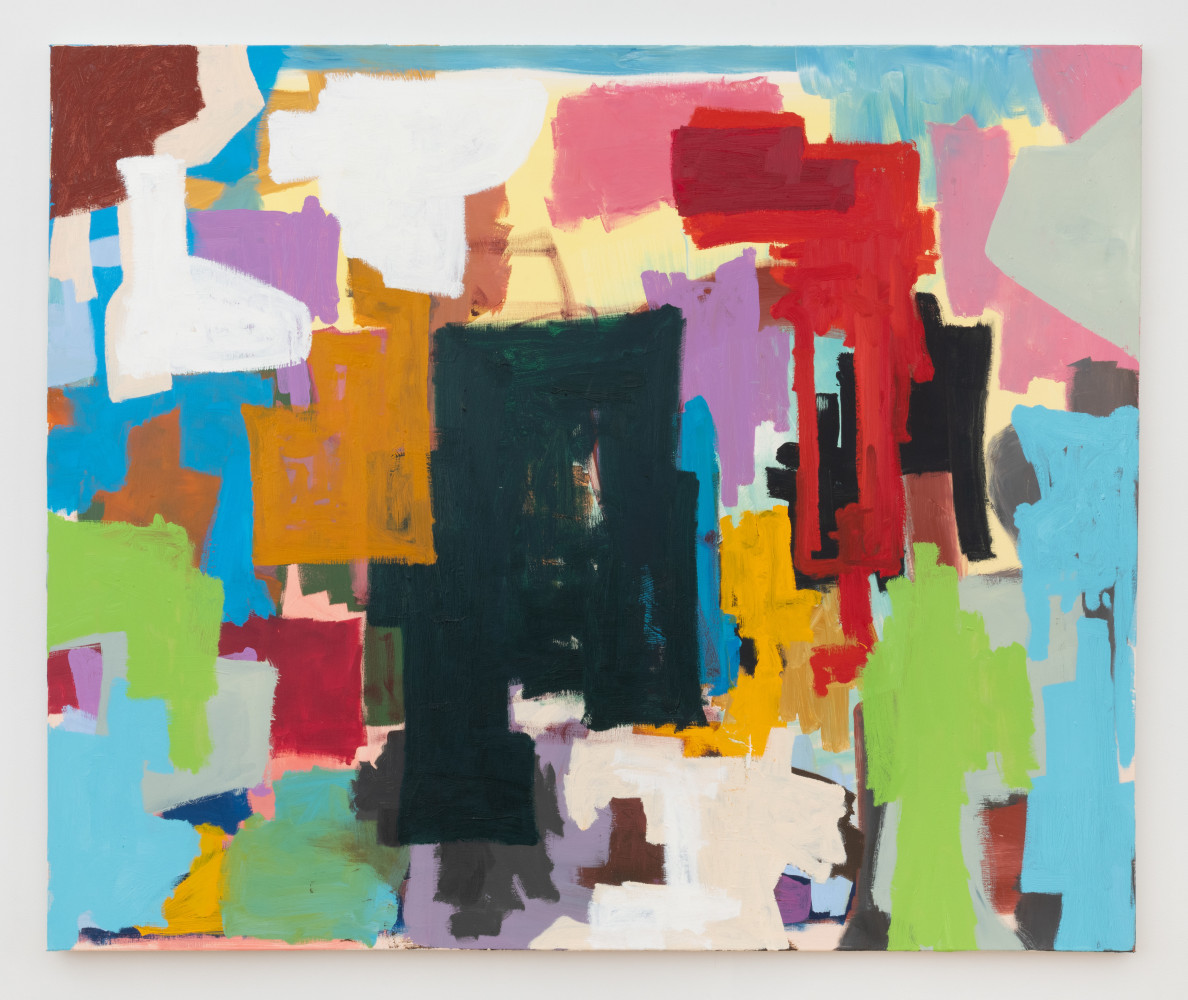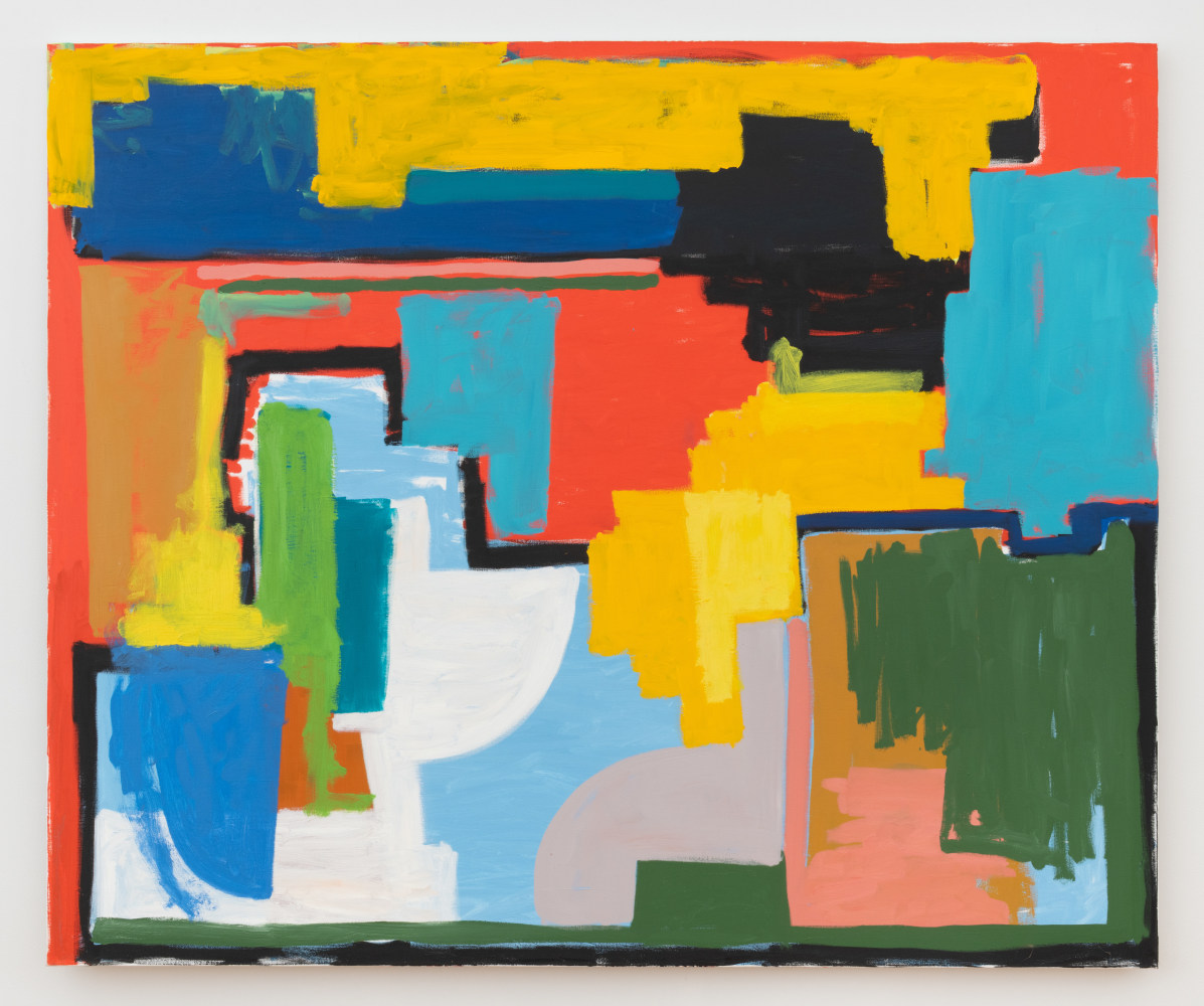 There’s a dramatic aspect to Sevigny’s paintings that operates in real time. His work with texture and color is a conscious decision that allows for the greatest interplay of patterned surfaces and multivalent shapes to assemble themselves. Despite the abstract nature of his work, there’s also something of a figurative bent detectable across his canvases. This movement between abstraction and representation is not so much a site of tension as a dynamic source of dramatic life. Sevigny’s paintings are both playful and adventurously nonobjective. Viewers’ eyes can trace the outlines of his storied, puzzle-like blocks into the scenes of an open-ended mosaic—intimating situationships, or the contours of a face in profile, as much as sprawling urban settings.