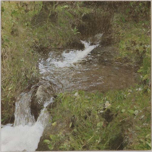 Hoffmann conceptually and radically expands the expression “a painter’s painter” into three or four dimensions – a painter’s painter’s painter, and so forth – implying that artists tend to paint the same scene over and over, copying each other through the centuries, until the source is obscured entirely. In one work in particular, 9 Years, he has worked and reworked the same canvas for literally nine years. Hoffmann seems to say, despite the existence of cave art, there is no original, “first” painting any more than an original, first artist; the evolution of art is about repetition and constant self-referral, a continued sampling – back and forth – of what came before and what will come to be.