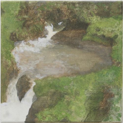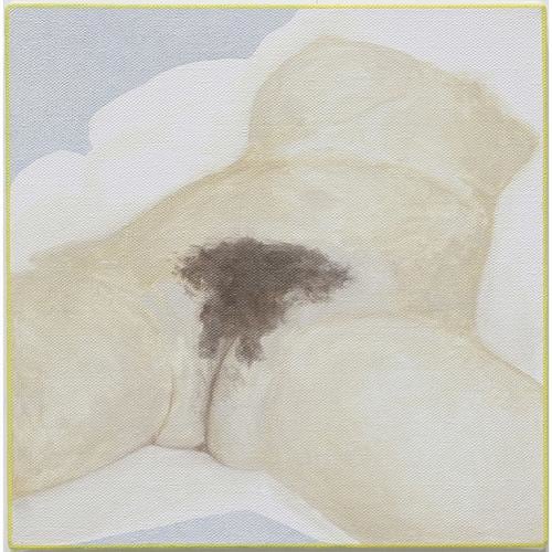 Zwischenzug and Untitled (Board) reference the oft-celebrated Modernist grid with their flat, minimalist abstraction; The Origin of the World, a fresh take on both Courbet’s 1866 masterpiece and Duchamp’s Etant Donnes, simultaneously etherealizes the female form through abstraction, while grounding it in a more contemporary art historical canon; in The Source and From Kelly’s Trees, Hoffmann alludes to the legacy of landscape painting.