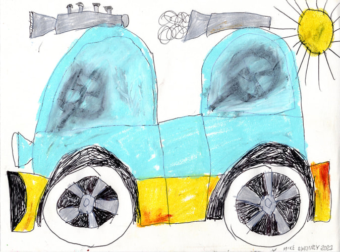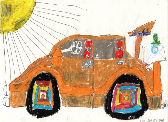 Ball point pen, graphite, pencil crayon and oil pastel on paper