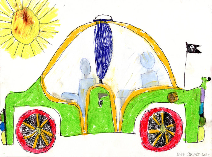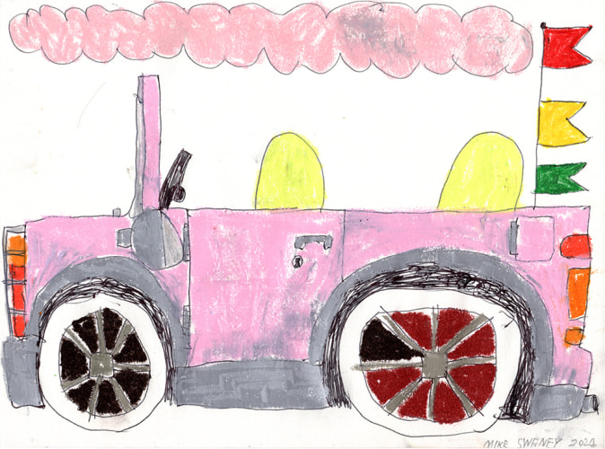 Michael Swaney, for his part, distills chaotic details into a sort of cartoonish shimmer, both furtively animate and deadpan, which showcases both the specificity of the subjects that inspire him and the craftsmanship of his handiwork. His Cochecito series puts to use the same materials that one might give to children in a K-8 art class: ballpoint pens, crayons, pastels. Other works, such as 4 Likes, 4 Dislikes, describe everyday life in archetypal yet playful ways, commenting on the potentials for love and malfunction which underlie the technologies giving shape to both city and suburb.