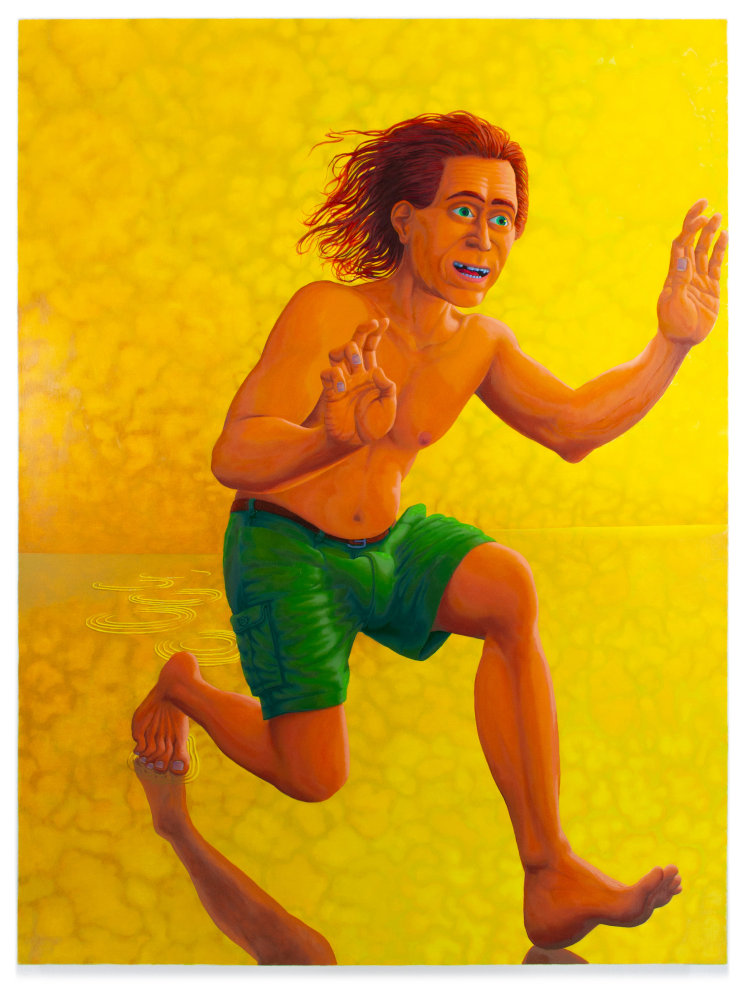 Inspired by VR, 3D animation and video game graphics, Wiley’s canvases fixate on a red-haired, avatar-like character. Recalling the notion of the “uncanny valley”, a theory that as robots become more realistic, they reach a point where their human likeness becomes unsettling, his paintings meditate on the increasingly common presence of virtual reality and our haphazard ways of coping with it.