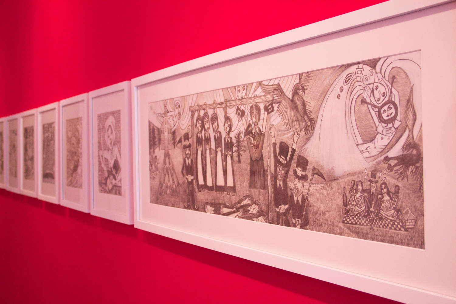 In conjunction with the films, the artist has created drawings, sculptures, and paintings inspired by Goyette’s personal and ancestral psychological history, pulling directly from her films. The magical objects, costume pieces and fragments from both Ghost Bitch films are presented on a monumental, fully-functioning altar to be activated in a participatory ritual on July 22nd from 6-8 PM led by Demetrius Lacroix, a member of the Ghost Bitch cast and spiritual advisor from Salem, MA.