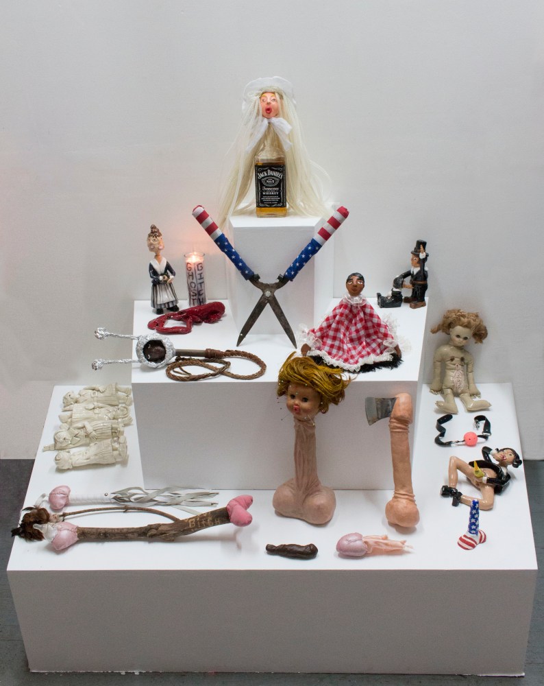 Rebecca Goyette’s video and multidisciplinary work reflects her complex view of sexuality, specifically the notion of fantasy from a feminist perspective. This progressive point of view and her penchant for the bizarre are apparent in her artistic practice, which involves embodying a broad range of characters in an ongoing series of psychosexual scenarios, acting as both director and protagonist in the two Ghost Bitch films. Her latest alter ego and the catalyst of this exhibition is an apparition of her ancestor and namesake, Rebecca Nurse, a witch hanged in Salem. Witch by day and dominatrix by night, Goyette’s character connects America's barbaric beginnings with her own personal trauma of a childhood spent in smalltown New England, culminating in a satirical lampooning of contemporary political turmoil.