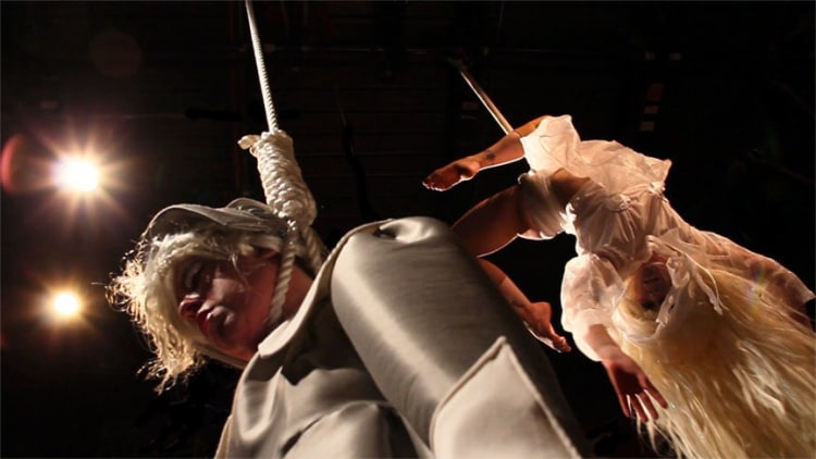 In Ghost Bitch: Arise from the Gallows, the Ghost Bitch character engages in erotic historical role-play. Shot on location in Salem and in collaboration with modern-day witches, Goyette inhabits the archaic stereotypes of an accused witch: the hysterical, hyper-sexual seductress, luring Puritan men into the dangers of the wilderness.