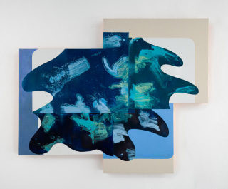 Freight + Volume is pleased to present Riad Miah: Is it Tomorrow (Or Just the End of Time), where a series of paintings evince the artist’s continued exploration of diverse materials and amusingly pertinent inspirations. Employing materials including oil, acrylic, Dura-Lar, and canvas, to explore the interplay of surface and texture—thick and thin, translucent and opaque, and matte and glossy—the artist showcases a selection of fastidiously pieced together shaped canvases.
