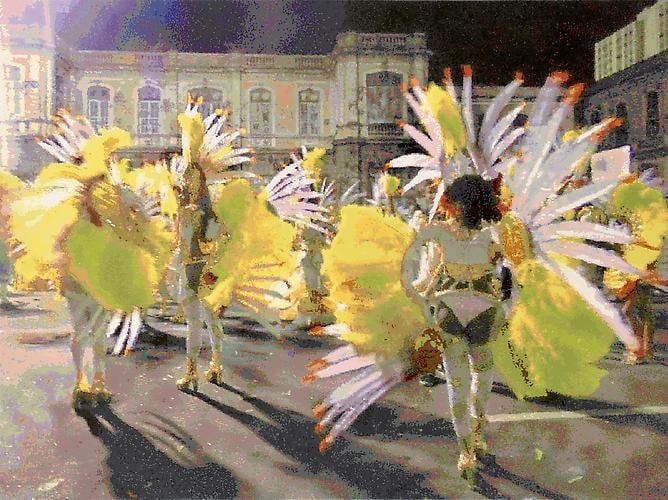 Their motto is all or nothing. They do not sit back and flip through magazines to find source images that reflect their subject; the artists need the experience first-hand, they are mobile and traverse destinations and socio-political landscapes to take thousands upon thousands of photographs of liberated and excited people who are celebrating, dancing, interacting and embracing. Out of these 10,000 or so images ten or fifteen a year become paintings.