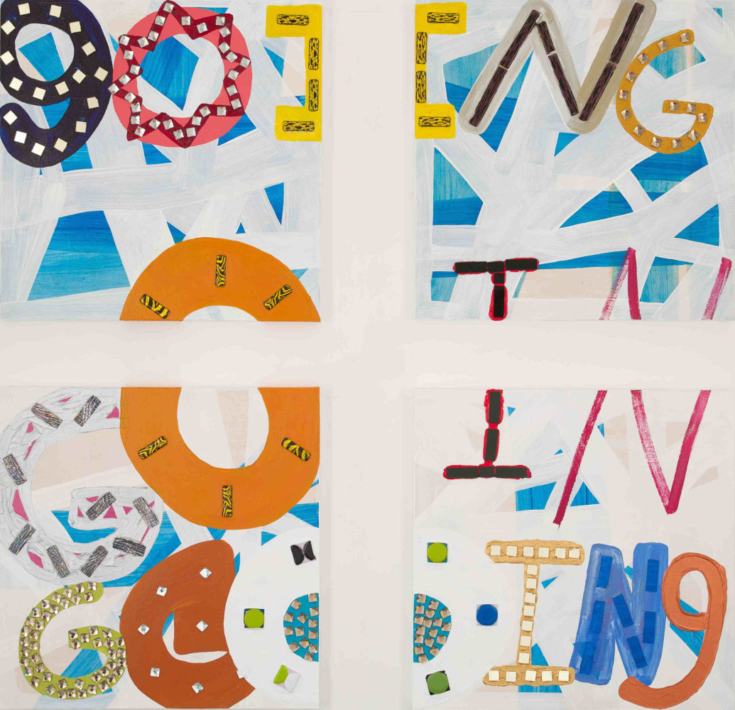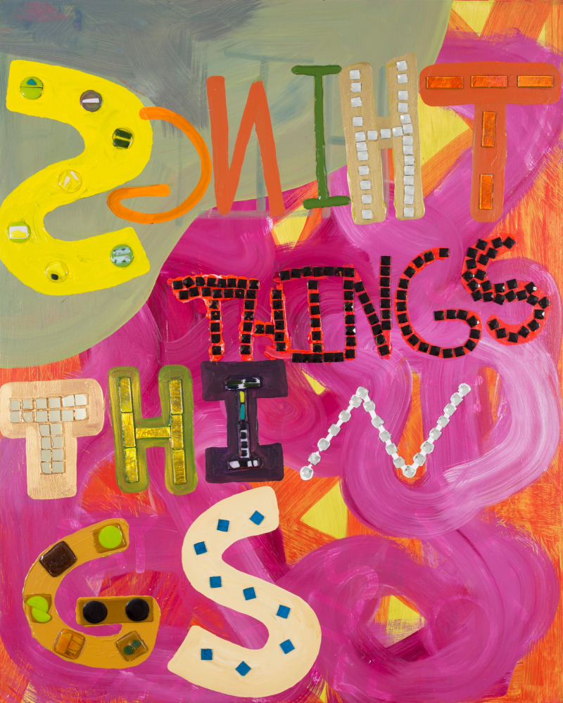 To be sure, visual poems, or literary images, have been around as long as cave paintings, Egyptian tablets and medieval illuminated manuscripts. Much more recently, artists such as Richard Prince, Ed Ruscha, Jenny Holzer, Barbara Kruger, On Kawara and Christopher Wool utilize text and narrative as the basis and driving force in their work. Samuel Jablon takes this legacy a step further in that he has created a way of seeing language in a new light – a light that shifts with the viewer’s experience and perception of the words, ultimately becoming a deconstruction of language and poetry in visual form. Jablon responds and riffs on paintings such as Wool’s Sell the House…Sell the Kids and Ruscha’s Hollywood in his own works – including Lots of Loot, America Dreams, Say Something and Do it. But Jablon is doing something a bit different.