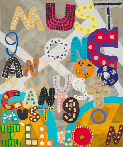 Samuel Jablon actually makes his words from scratch, fashioned out of mundane materials and sometimes almost nothing. The words he chooses - and in many instances the poetry - may have existed before, but the artist appropriates them, takes each individual letter and molds them carefully and lovingly into personal tableaus from a variety of materials at hand – sequins, mirrors, thick paint, tiles – and thereby makes them his own. The words mean something, or perhaps they mean nothing – but in the end it doesn’t matter, because they are beautiful. Like a seasoned speechwriter ghostwriting text for the artworld , Jablon weaves the words with a dazzling and mellifluous spin. He is affable, polite and good-natured and brilliant - in art as well as in life - and the words he chooses reflect that character. They exist easily on the surface but at the same time they also dig deep – they tease and flirt slyly with our imagination but they are also sincere and pure of heart.