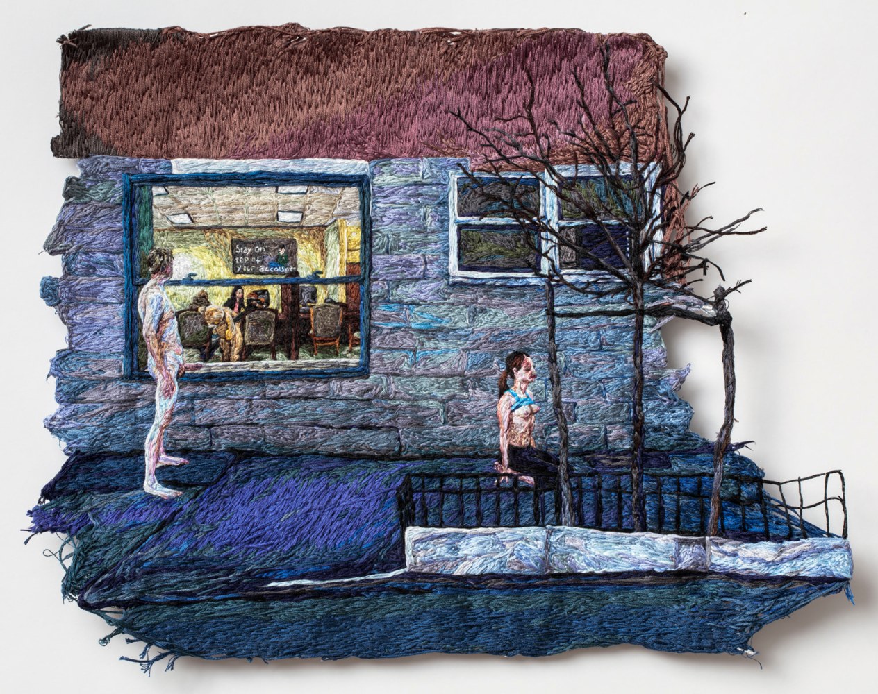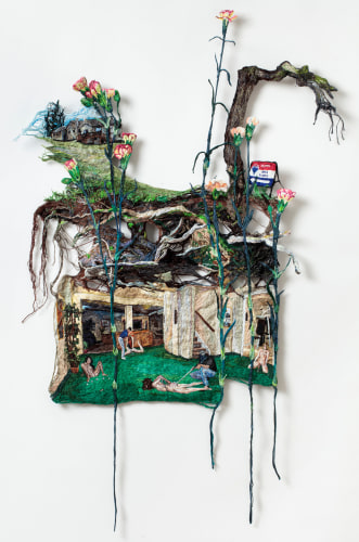 Freight+Volume is pleased to present Sophia Narrett’s new solo exhibition Early in the Game. For this exhibition, Narrett has created a body of embroidered wall pieces that weave a psychologically charged narrative. Accompanying the exhibition will be a full color limited edition book, available for sale.