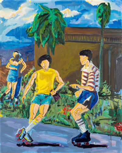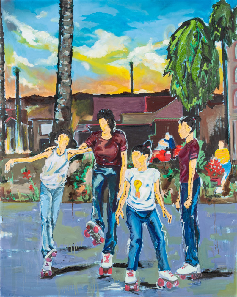 Color cuts into the substance of Will Watson’s works like an emanation. Across the paintings featured in Golden Time of Day, this source is twofold. On the one hand, Watson delights in mingling colorations from across the spectrum. From warm tones to cool, he creates surfaces which feel simultaneously dream-like and iconic. On the other hand, Watson’s eye for color doesn’t eschew the racialized connotations of the term. His paintings depict persons of color—especially families and youth—with a joyful regard that doesn’t preclude the realities of systemic injustice, or the dormant potentials that form the hallmark of many American lives.
