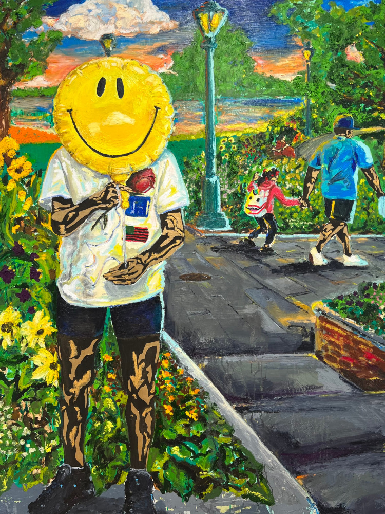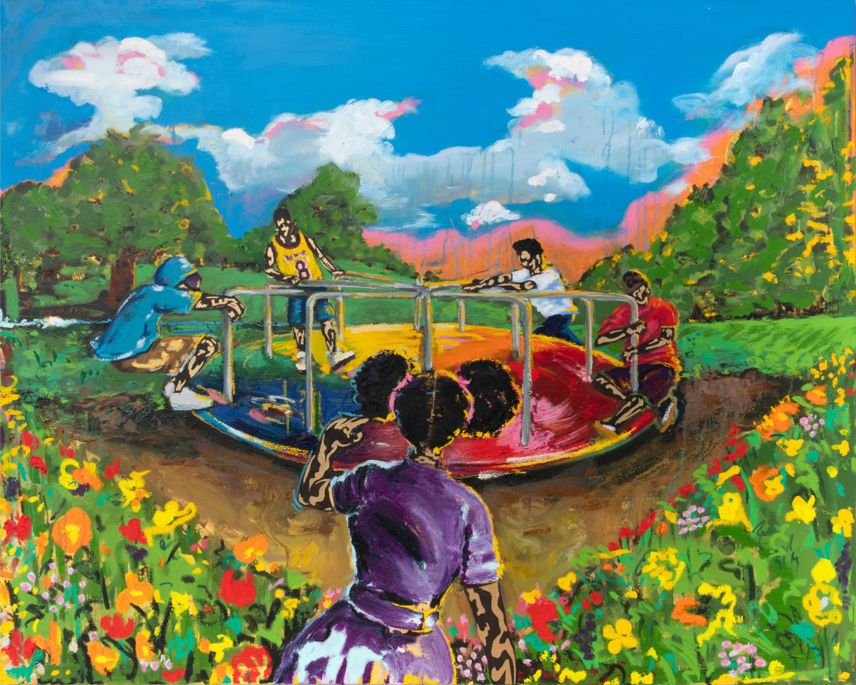 Merry Go-Round (Freestyle) encapsulates this spirit entirely. At once realistic and abstract, detailed and simplistic, the emotions expressed through the painting are motivated by memory as much as imagination. However fanciful the setting might appear, remembered experiences form the essential substrate of the work. There’s a greater context implied by the perspective Watson has chosen to recreate—as though nostalgia could unburden itself of any vestiges of sorrow and render present the joyful essence of what it fixes in the past. The suggestion of there being more than what is given to the eye lends the paintings a kind of tranquil depth: it doesn't shock, but rather guides viewers towards recognitions with which they’re already familiar.